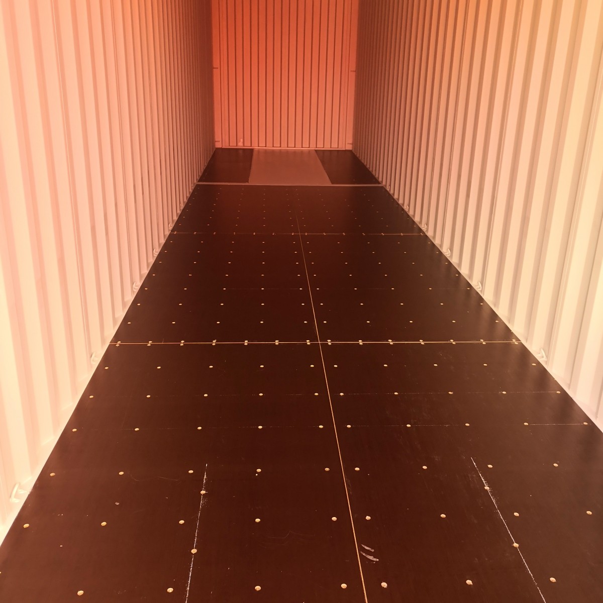 用于集裝箱內部底板。一般由高強度的竹簾搭配優質的木皮(橡木、桉木、櫸木),按一定的順序組坯,經高溫高壓壓制成型,集裝箱底板膠水使用濃度為普通竹膠板的1.5倍以上,其板面平整、內在強度高,抗壓抗腐蝕,單張板材能承載6-7.3噸的重量。